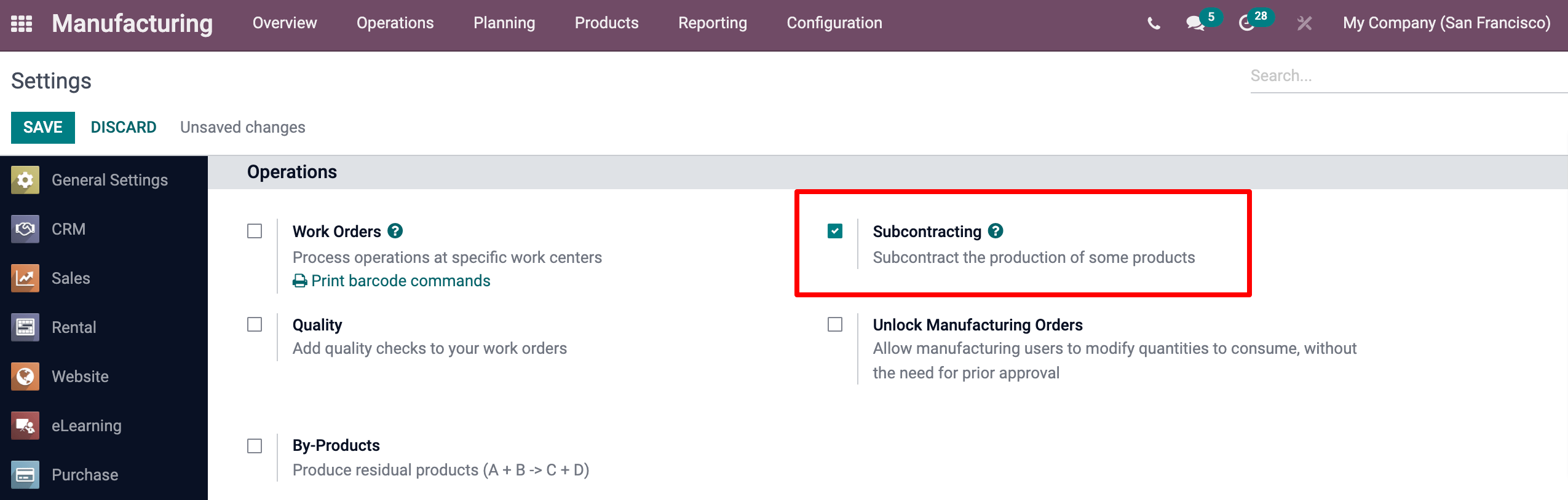 To use the subcontracting feature, go to and tick the box Subcontracting.
